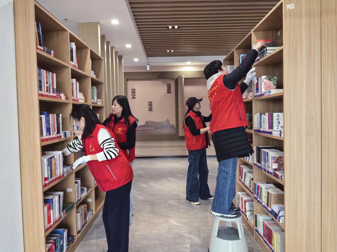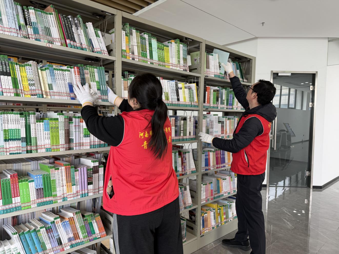随后,党支部同步启动学雷锋实践育人行动,全体教职工携手青年志愿者开展志愿服务,重点开展清洁书架桌椅、阅览椅分类摆放、图书整理归位等实操工作,将正确政绩观理论学习成果转化为服务师生、美化阅读环境的实际行动,以实干担当践行初心使命,切实筑牢图书馆育人阵地,助力学校育人质量稳步提升。